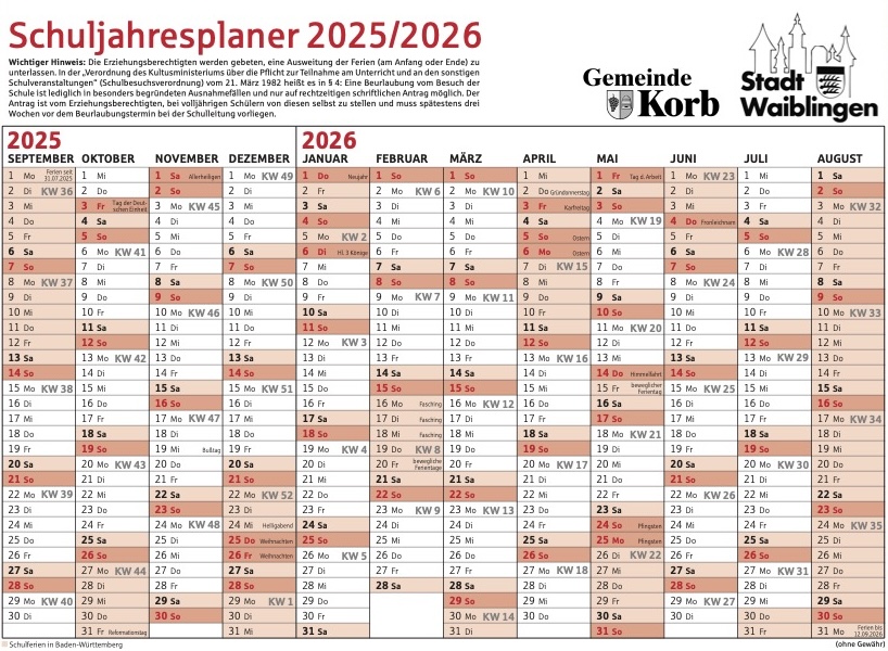 Ferienplan Bewegliche Ferientage 2025 / 2026 : 16.02. – 20.02.2026 Faschingsferien 15.05.2026 Brückentag
