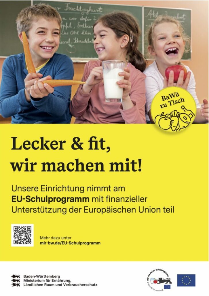 „Als Teilnehmer des EU-Schulprogramms ist uns gesunde Ernährung eine Herzensangelegenheit. Für mehr Informationen können Sie den Flyer auf der Seite mir-bw.de/EU-Schulprogramm in neun Sprachen lesen.