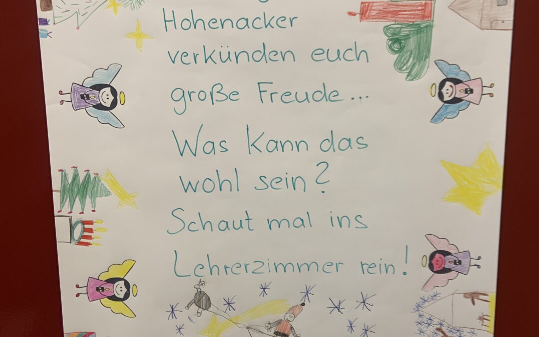 So stand es an der Tür und die Freude darüber im Lehrerzimmer war groß, denn dort warteten ganz viele kleine Engel auf jeden einzelnen von uns.